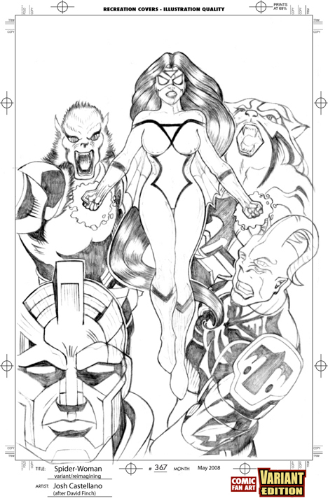 Variant-Edition.com is an online portfolio and features comic fan art illustrations by artist/fan Josh Castellano. The portfolio includes illustrations of recreations and re-imaginings, electronic coloring, and eventually orignal work. The main subject matter of recreations and re-imaginings focuses around the Spider-Woman character and placing her in current titles and storylines in a "What-if Spider-Woman was never cancelled" scenario as well as outlining a brief storyline. Variant-Edition.com is updated monthly. All artwork and designs are owned, trademarked and © copyright 2013 by Josh Castellano. All characters have © copyrights from their respective publishers. For questions and comments, email: josh(at)variant-edition.com.